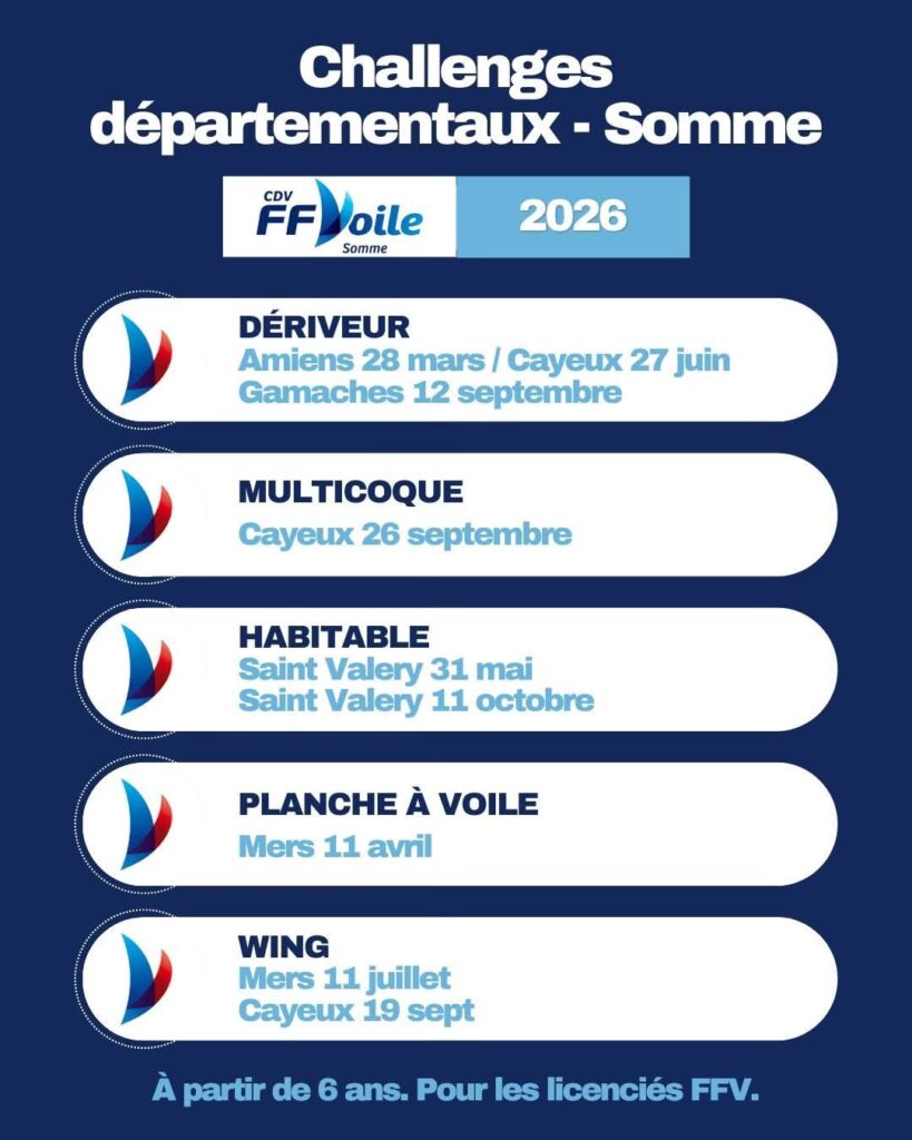 Le comité départemental de Voile de la Somme organise plusieurs challenges voile en 2026.