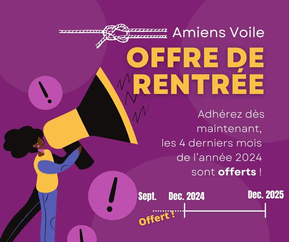 C’est la rentrée ! La Fédération Française de Voile vous offre les derniers mois de l’année 2024. Adhérez à Amiens Voile dès maintenant et profitez de votre adhésion jusque décembre 2025 !