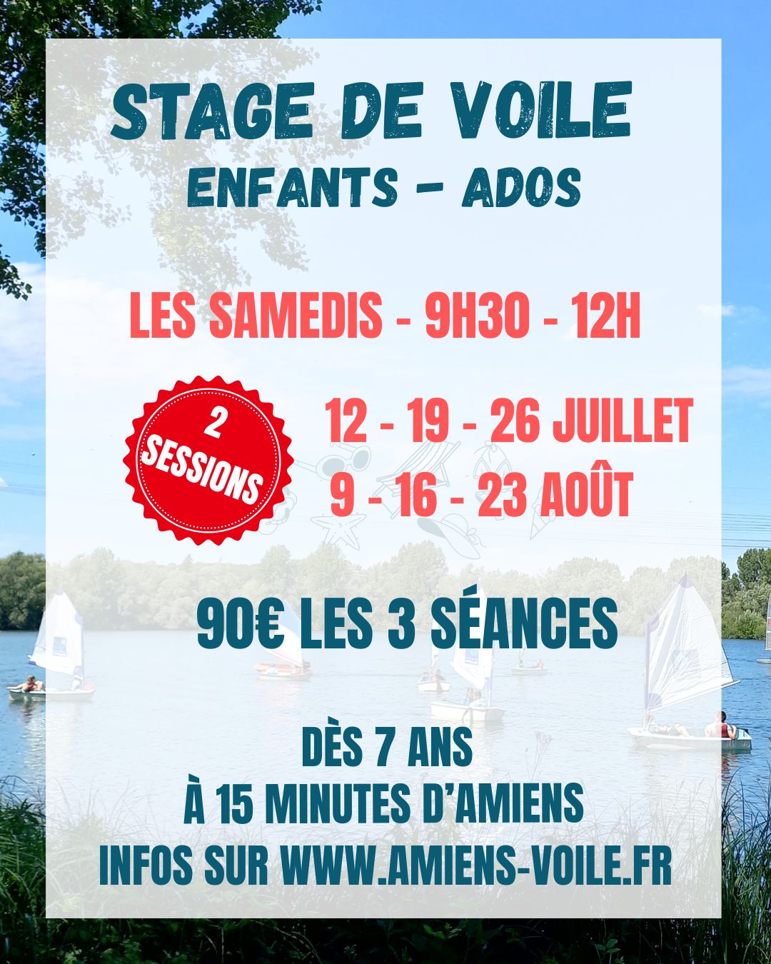 Stage de voile été 2025 Auteur/autrice de la publication :Romain Publication publiée :21 mai 2025 Post category:Non classé Les inscriptions sont ouvertes. Plus d’infos sur https://www.amiens-voile.fr/stage-de-voile/ Read more articles Article précédentCoupon sport ANCV Article suivantAnnulation régate du 24 mai Vous devriez également aimer Régate annulée 8 mai 2023 Ouverture de la saison 2024 11 février 2024 Coupon sport ANCV 8 mai 2025